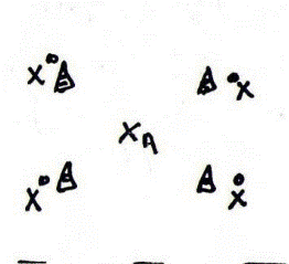 d’attaquants (intersection lune 18m) Entraineur devant les attaquants.
